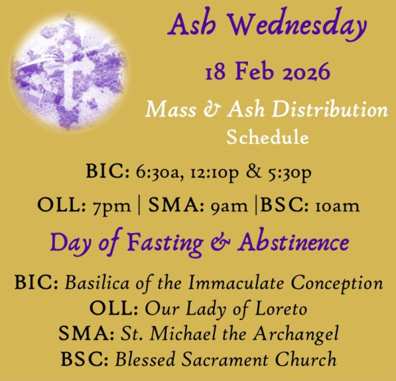 CONFESSION SCHEDULE - Basilica (BIC) only